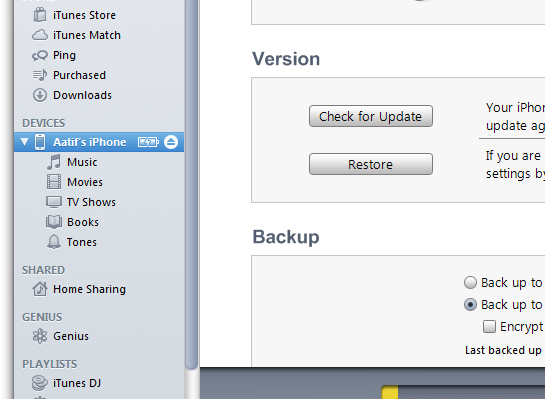 To do so, connect your supported device to iTunes through USB cable. You must have updated iTunes to 10.6.3 (latest version) before that. From the left sidebar, select your device.